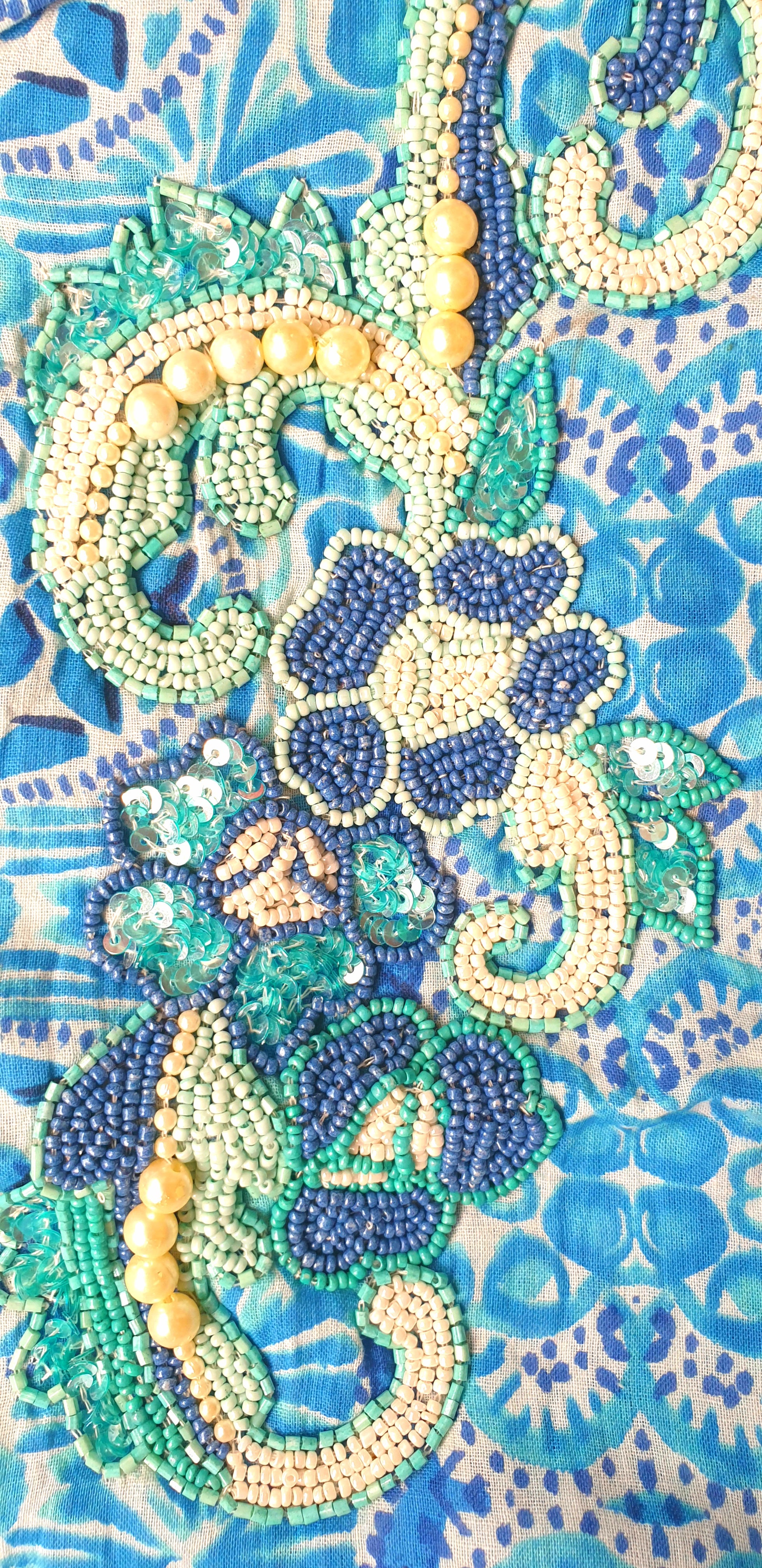 100% Cotton Kaftan / Intricate Pearls, Sequins + Beads